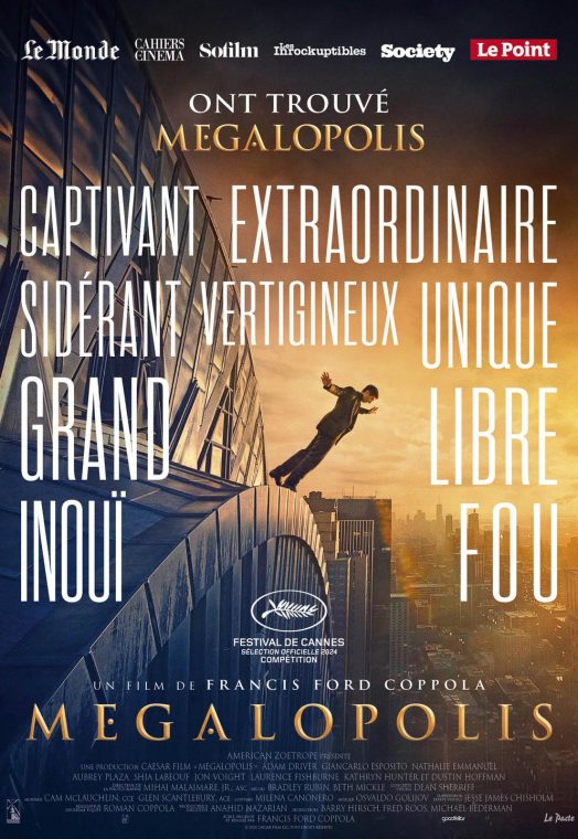Megalopolis est une épopée romaine dans une Amérique moderne imaginaire en pleine décadence. La ville de New Rome doit absolument changer, ce qui crée un conflit majeur entre César Catilina, artiste de génie ayant le pouvoir d’arrêter le temps, et le maire archi-conservateur Franklyn Cicero. Le premier rêve d’un avenir utopique idéal alors que le second reste très attaché à un statu quo régressif protecteur de la cupidité, des privilèges et des milices privées. La fille du maire et jet-setteuse Julia Cicero, amoureuse de César Catilina, est tiraillée entre les deux hommes et devra découvrir ce qui lui semble le meilleur pour l’avenir de l’humanité